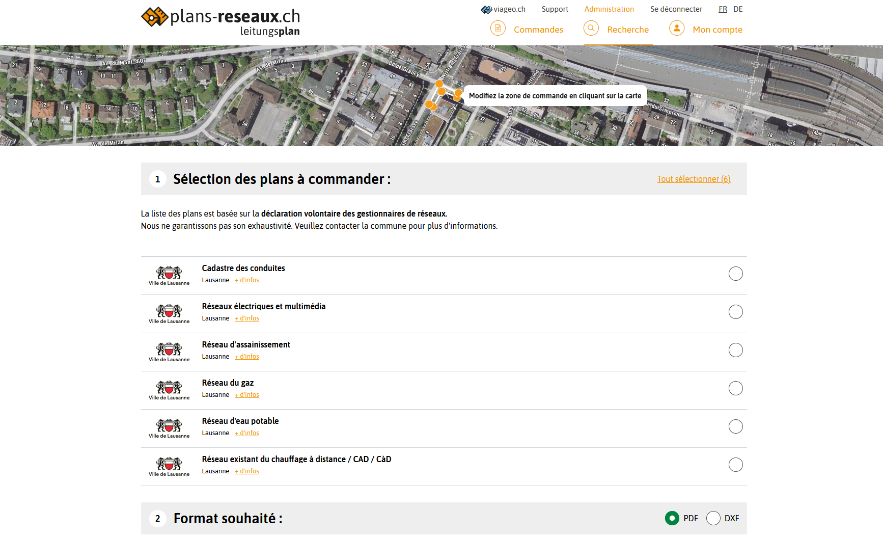 Actuellement, la Zone preselection API de plans-reseaux permet de faire un lien sur la page d'accueil du portail (la carte) avec une présélection de la zone à commander.